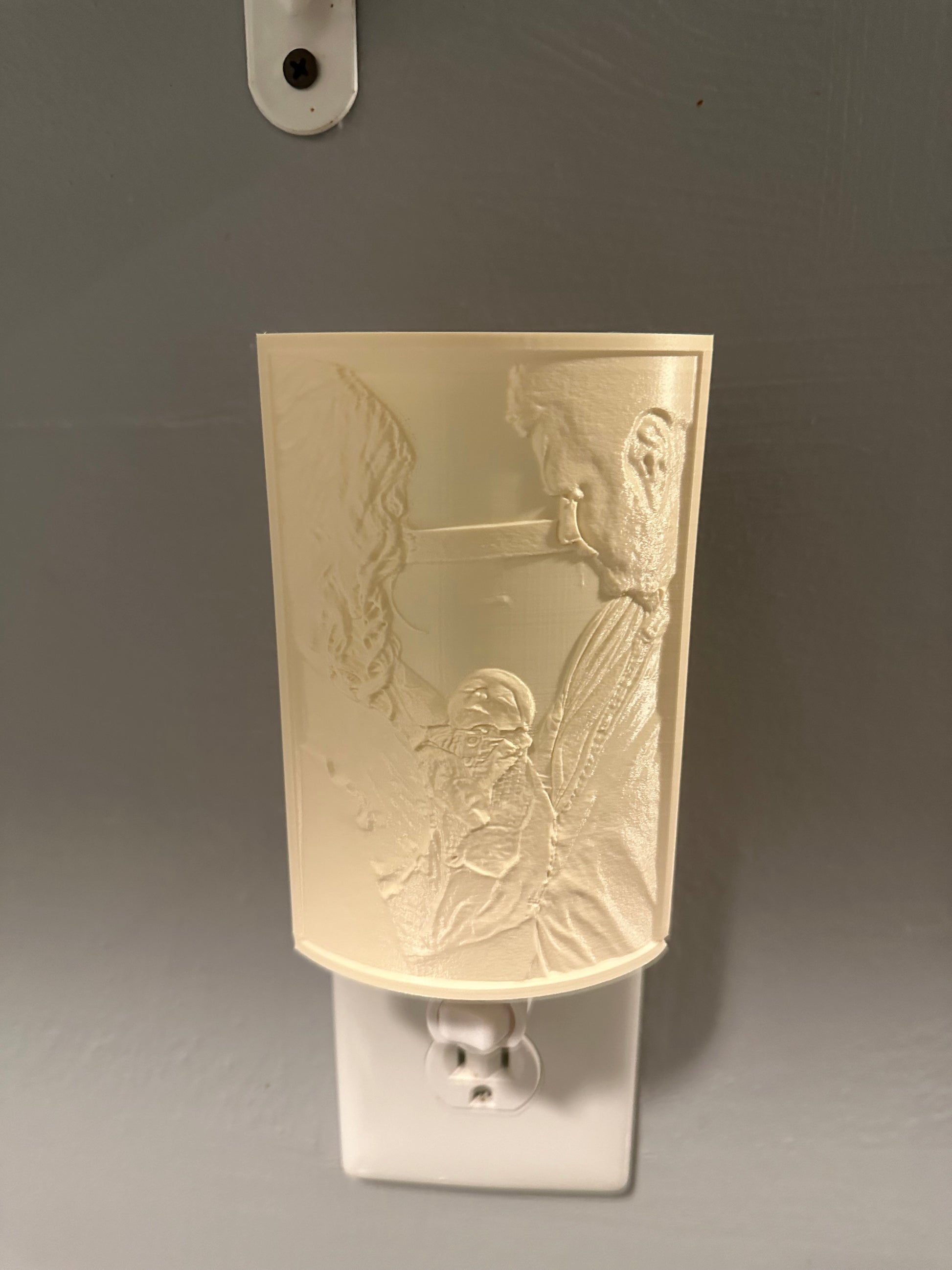 Looking for a way to eloquently light up a room at night without turning the lights fully on? Well, you are in the right place! This is a perfect way to light up a room with your favorite picture. This warming night light plugs directly into the wall and has an on and off switch. The LED bulb allows for long-lasting fun.